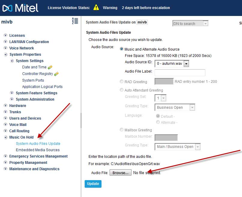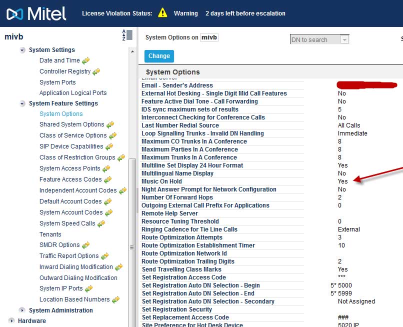 Step 2)Login to MiVoice Business system manager, set Music On Hold Tab: